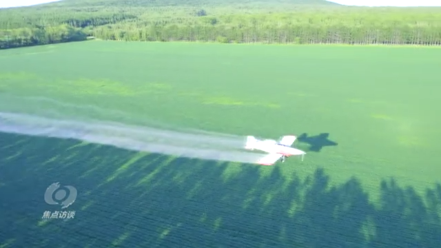 北大荒集团宝泉岭农场综合经济部王洪涛说:“利用传统的机械进行喷洒药物,只能将药液喷洒到作物的正面,而作物的背面根本就附着不到药液,起不到灭虫的效果。而用大飞机的效果就不一样,大飞机的气流可以吹动作物的叶片随风摆动,正面反面都能(附)着药液,起到了杀虫灭菌的效果,起到事半功倍的效果。”