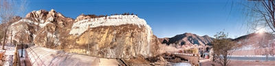 骆驼湾村的“太行冰瀑”景观,在朝阳的映衬下,尽显独特神韵。