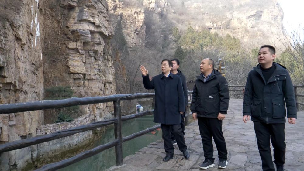 2月10日,马萧林(左一)在红旗渠调研红色遗产保护利用情况。受访者供图