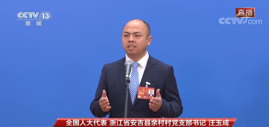 光明日报社记者:我是《光明日报》记者,我的问题提给汪玉成代表。习近平总书记在您的家乡浙江安吉考察时,提出了“绿水青山就是金山银山”的理念。作为一名来自基层的党支部书记,您是如何带领乡亲们践行这一理念,推动乡村振兴的?