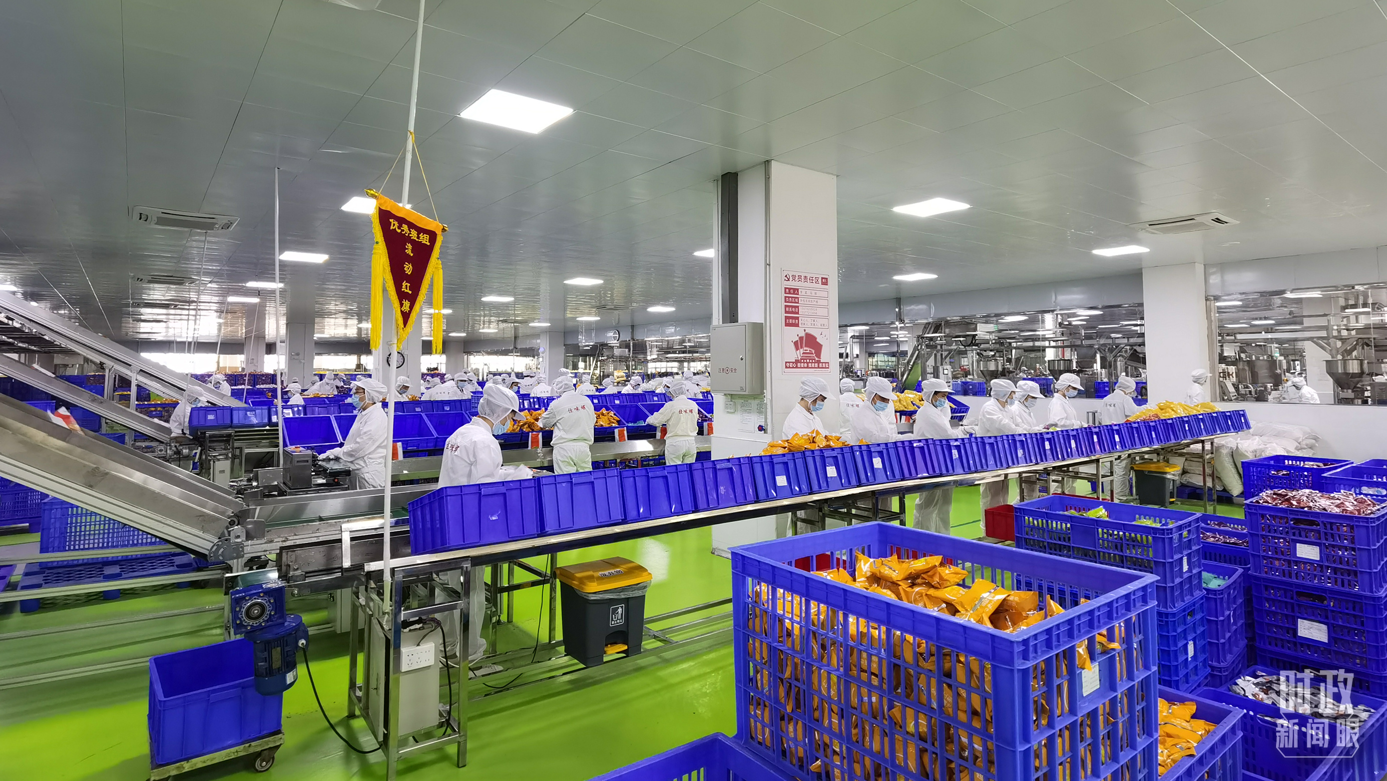 △广西柳州,工人在螺蛳粉生产车间生产线上包装袋装螺蛳粉。2021年,习近平到柳州螺蛳粉生产集聚区调研,鼓励民营企业大胆地去发展。(总台央视记者郭鸿拍摄)