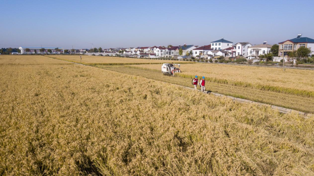 △ 江苏镇江丹徒区世业镇世业村依托得天独厚的水资源优势,稻子连年丰收。