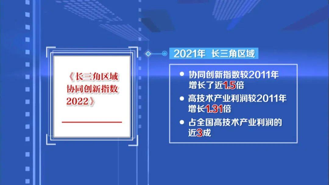 根据最新发布的《长三角区域协同创新指数2022》,2021年,长三角区域协同创新指数较2011年增长了近1.5倍,高技术产业利润较2011年增长1.31倍,占全国高技术产业利润的近3成。2022年,长三角地区生产总值已达29万亿元,以占全国二十六分之一的面积,连续五年创造了全国近四分之一的经济总量。长三角,已成为中国经济最活跃、开放程度最高、创新能力最强、市场容量最大的区域之一。