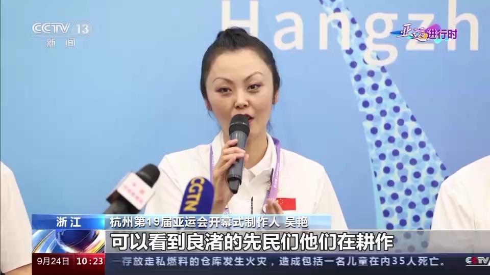 杭州第19届亚运会开幕式制作人 吴艳:大家在秋分的这一天,可以看到良渚的先民们他们在耕作、他们在庆祝丰收。我们觉得不管是杭州的观众,还是来自亚洲各个国家的运动员,他们在“大莲花”的这一天,让他们感受到丰收的快乐,也希望让他们得到这份美好的祝福,在赛场上折桂 。