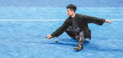 9月25日,武术男子太极拳太极剑全能决赛,中国体育代表团选手高浩楠在比赛中。