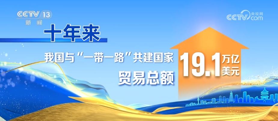 “高”是指贸易额。十年来,我国与“一带一路”共建国家的进出口贸易快速增长,贸易总额达到了19.1万亿美元。