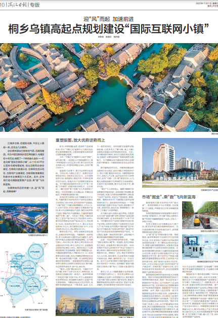 11月1日,《浙江日报》整版刊发《迎“风”而起 加速前进 桐乡乌镇高起点规划建设“国际互联网小镇”》,全文如下: