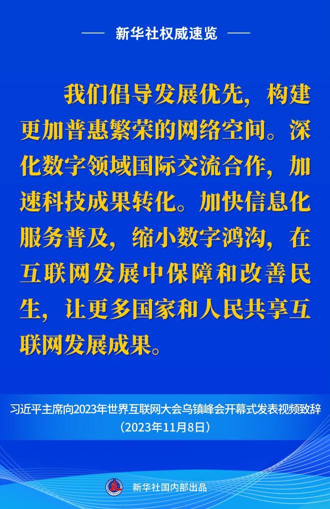 新华社权威速览丨习近平主席向2023年世界互联网大会乌镇峰会开幕式视频致辞金句