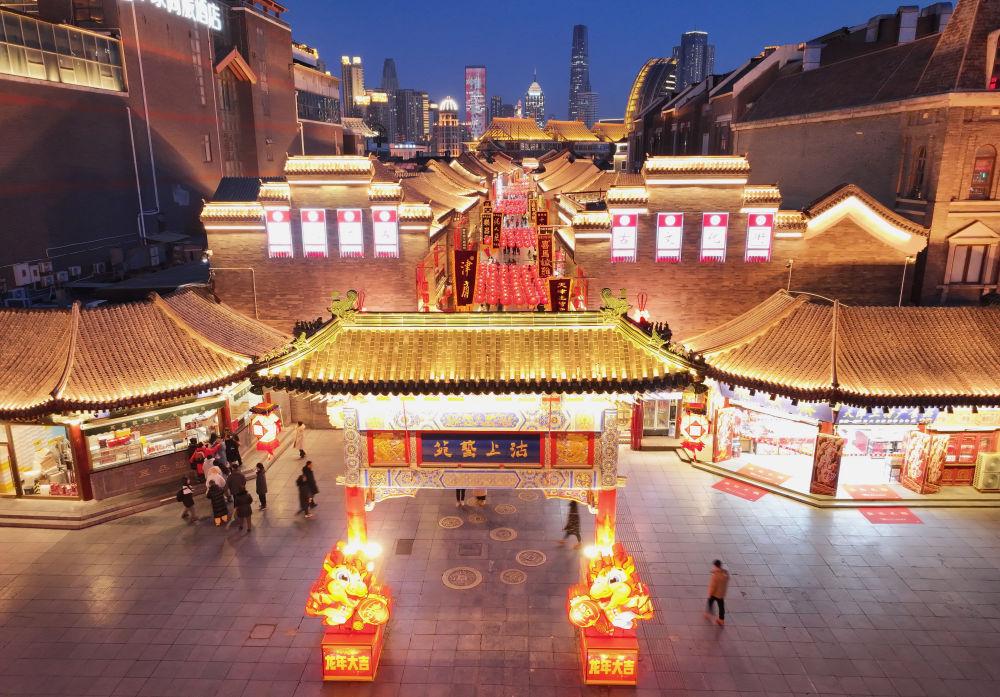 这是近日拍摄的天津古文化街(无人机照片)。新华社记者 赵子硕 摄