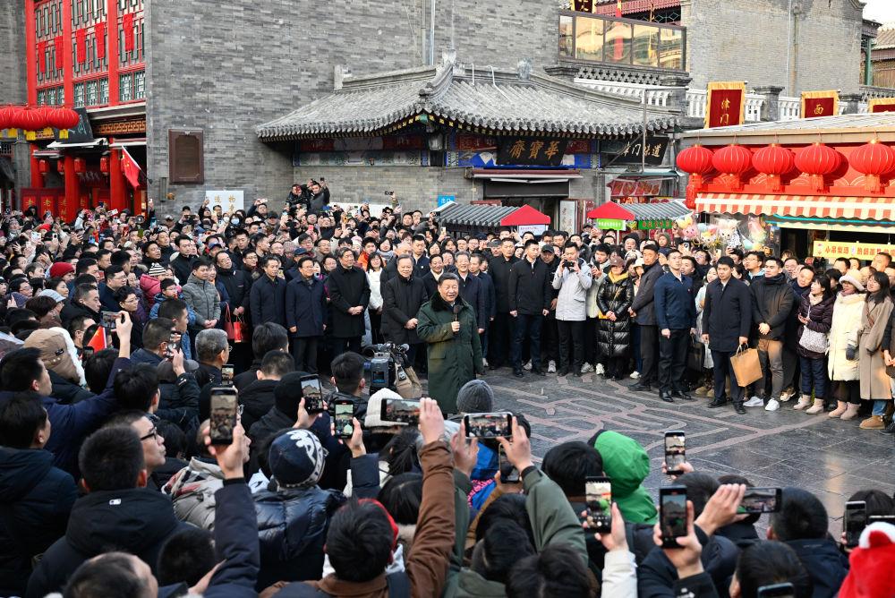 察看节日市场供应和历史文化街区保护利用等情况