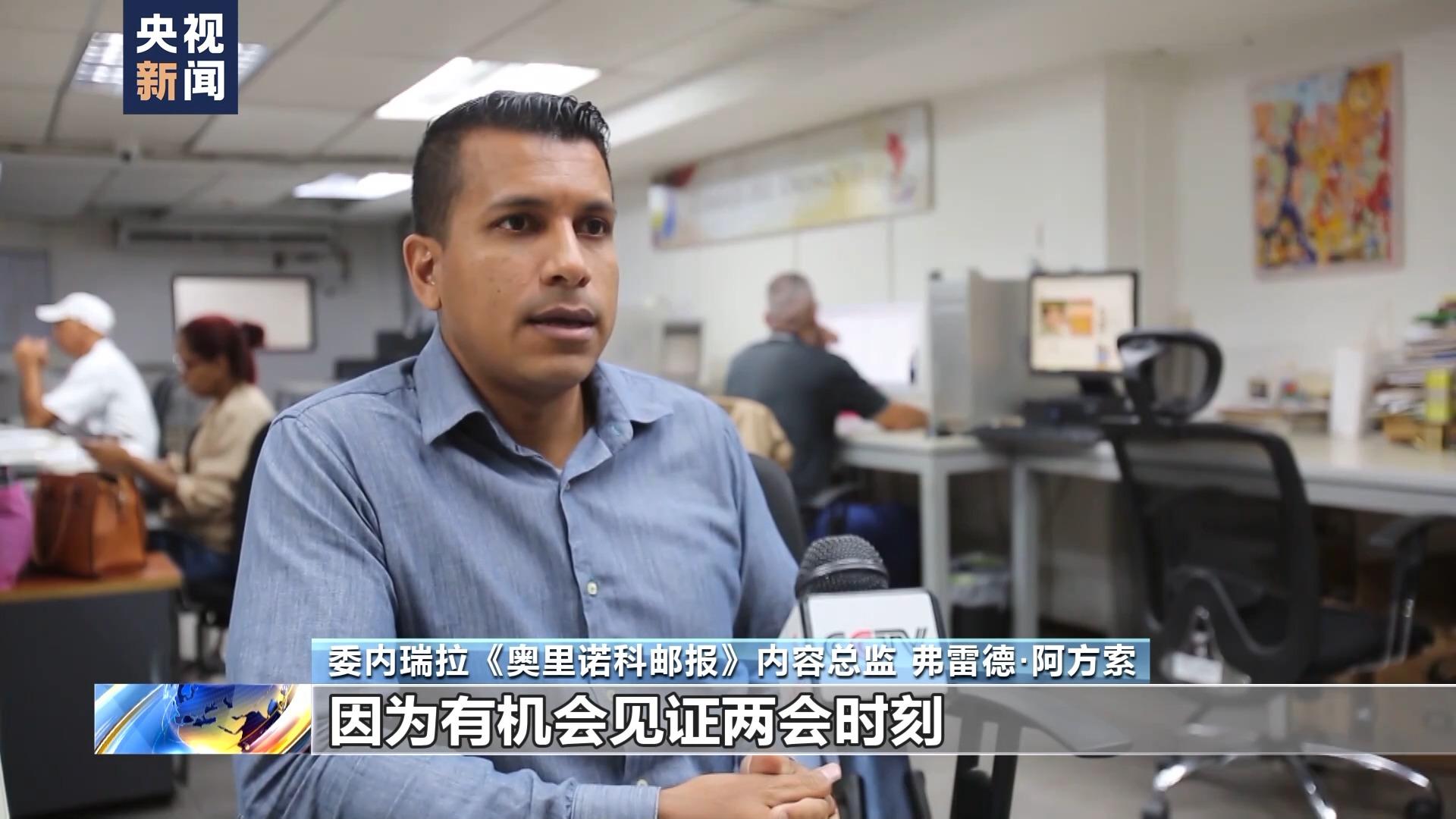 委内瑞拉主流媒体《奥里诺科邮报》内容总监弗雷德·阿方索今年第一次到中国报道两会。弗雷德主要关注的话题包括中国经济发展前景、外交政策重点等方面,他希望通过实地报道的形式,将更多两会资讯呈献给观众。