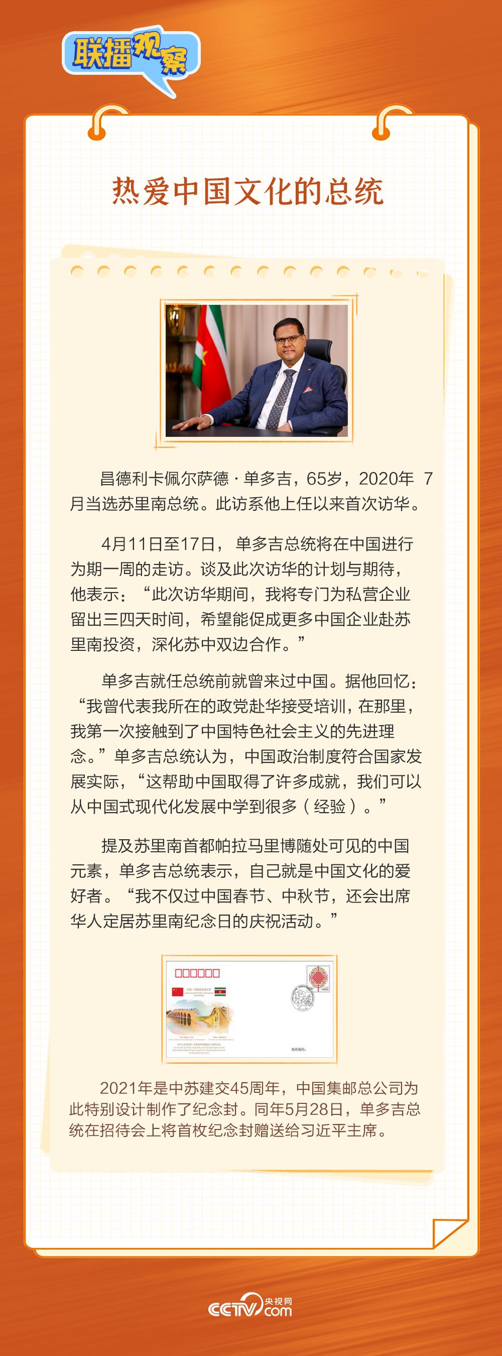 此访是单多吉总统上任以来首次访华,这次会谈对两国关系发展具有怎样的重要意义?苏里南又是怎样的一个国度?《联播观察》邀您一同了解。