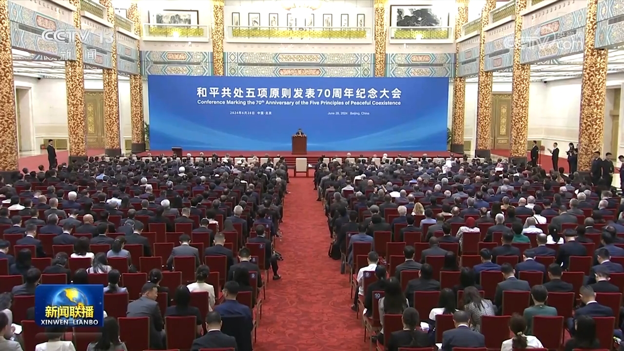 央视网消息(新闻联播):6月28日,国家主席习近平出席和平共处五项原则发表70周年纪念大会,并发表题为《弘扬和平共处五项原则,携手构建人类命运共同体》的重要讲话。习近平主席在讲话中全面阐释和平共处五项原则的精神内涵和时代价值,在世界百年未有之大变局中指明构建人类命运共同体的前进方向,发出“全球南方”同世界各国人民共创美好未来的时代强音。与会国内外人士表示,习近平主席的重要讲话饱含着对历史的深邃思考、对现实的深刻分析、对未来的长远谋划,必将对推动各国同心协力建设更加美好世界产生重大而深远的影响。