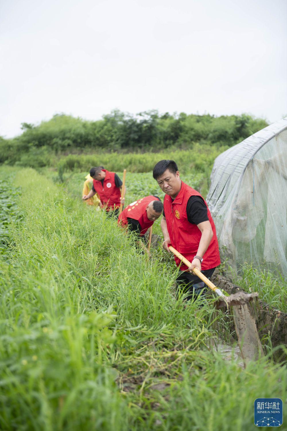 6月28日,在黄山市屯溪区奕棋镇徐村,“春晓”志愿服务队队员在清沟沥水。