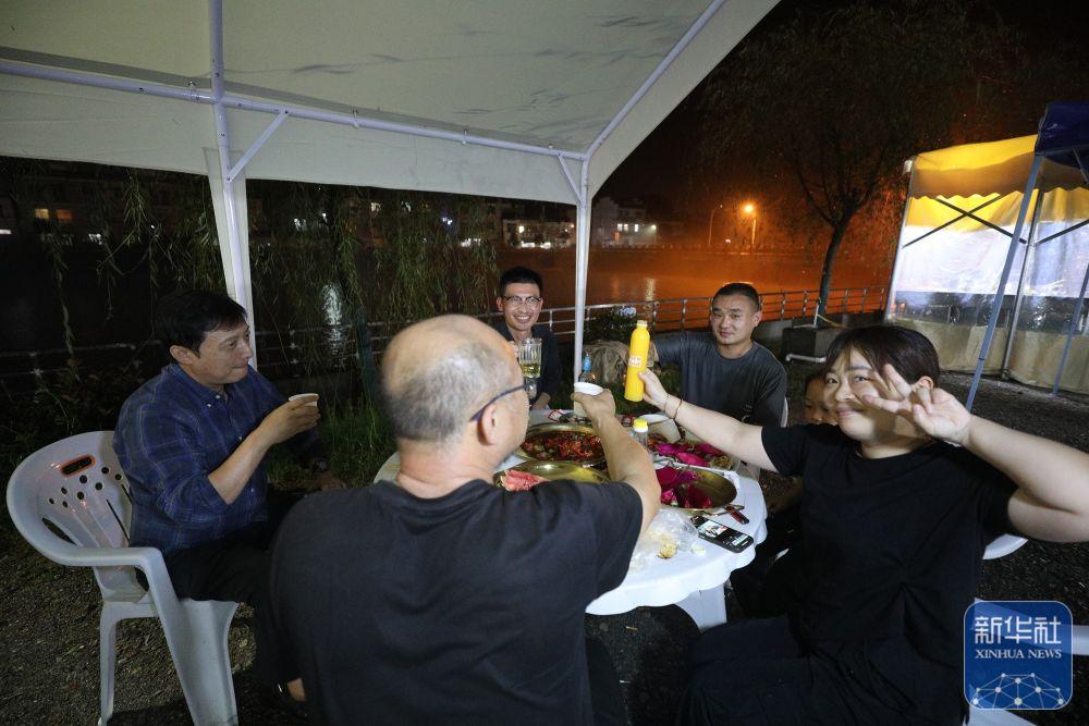 6月28日,市民在黄山市屯溪区兖溪夜市吃饭。兖溪夜市于6月20日因暴雨停业,6月28日恢复营业。新华社发(樊成柱 摄)