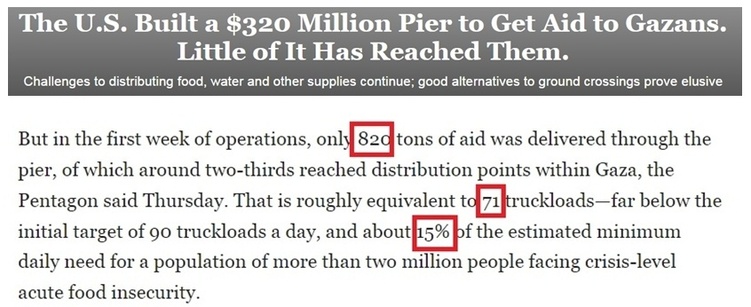 更荒唐的是,多方认为,该码头在援助平民方面“是一场巨大的惨败”。事实也证明,临时码头的运作过程极其复杂低效。