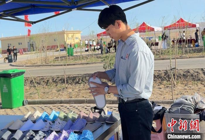 中新网乌鲁木齐7月19日电 (马晓东)“这些拖鞋都是在喀什生产的,质量保证过关。”近日,在乌鲁木齐市的一家酒店大堂,李殷澈努力推销着自己的产品。