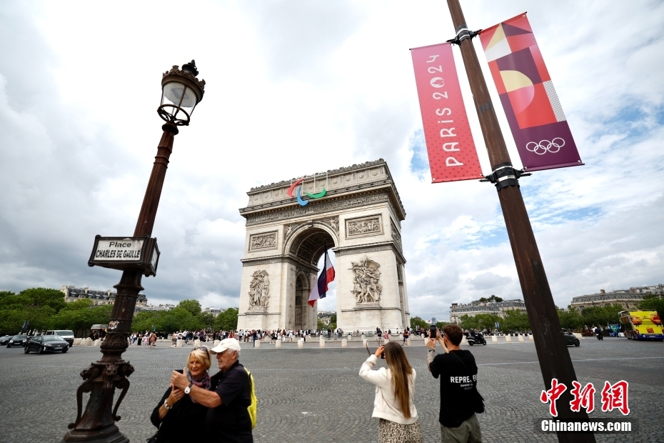 当地时间7月21日,巴黎奥运会开幕在即,巴黎街头奥运氛围浓。