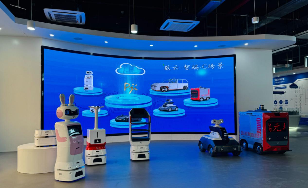 研发这辆自动驾驶车的朴津智能,是一家既有工业化基因,又有互联网和人工智能属性的智能创新公司。走进园区,“智造”成果随处可见:引导服务机器人、智能配送机器人、室内外清洁机器人等智能移动机器人正在试验场内展示着各种应用场景。