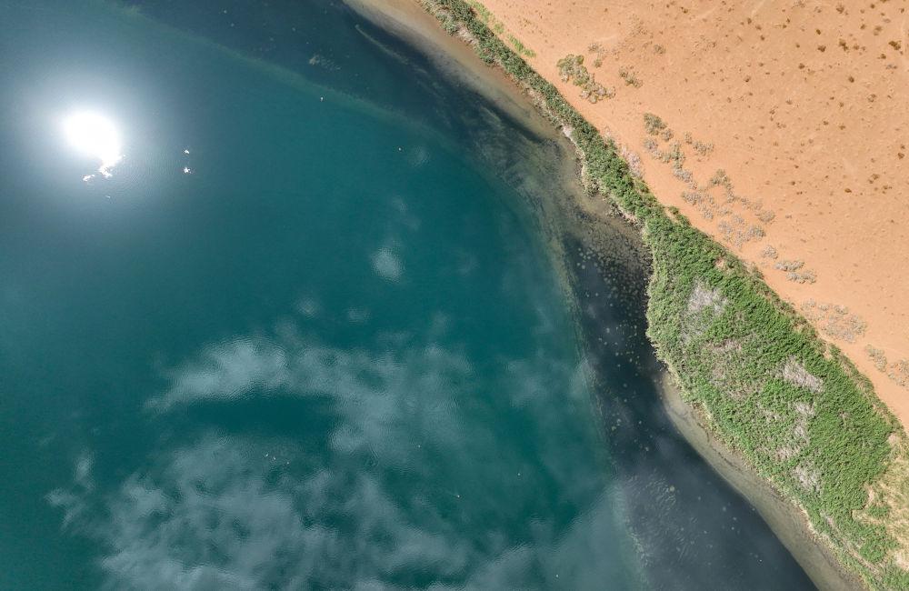 7月31日拍摄的巴丹吉林沙漠中的南海子(无人机照片)。