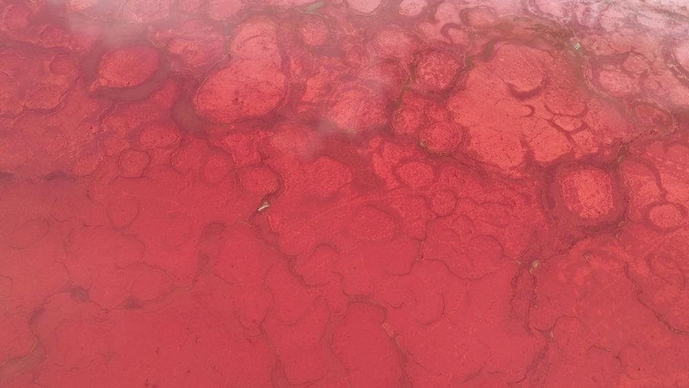 7月30日拍摄的巴丹吉林沙漠中的红海子(无人机照片)。