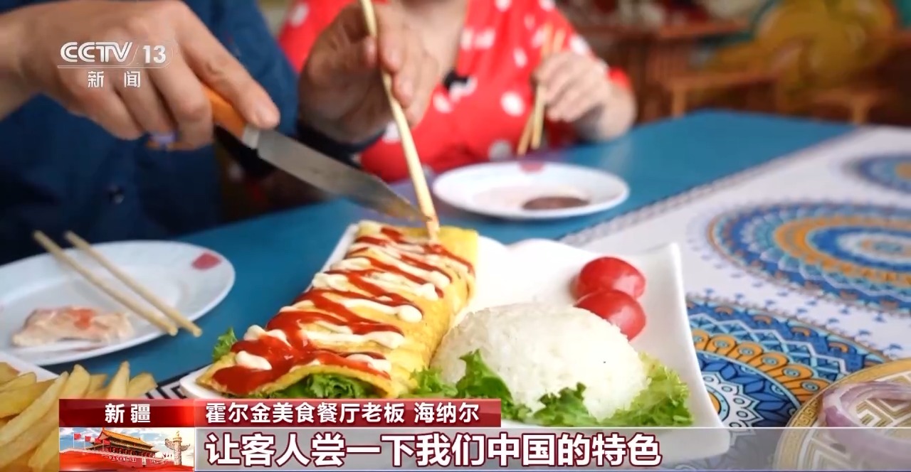 霍尔金美食餐厅老板海纳尔:我开这个餐厅,两个国家的厨师带过来,让客人尝一下我们中国的特色,哈方的特色,我们继续努力,继续干。