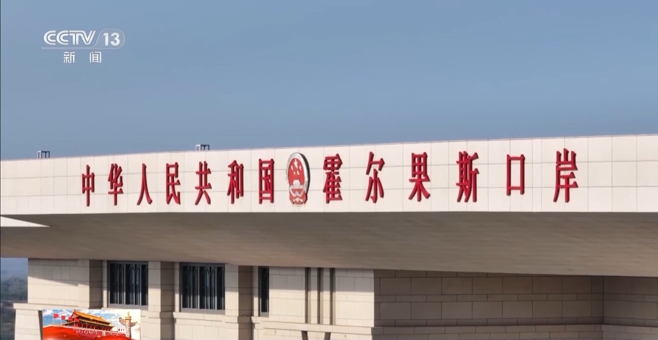总台央视记者 王莉:这里是位于新疆伊犁哈萨克自治州的霍尔果斯公路口岸,这座巍峨雄伟的建筑就是霍尔果斯第六代国门,这里与哈萨克斯坦隔河相望,是中国向西开放的重要窗口和连接亚欧大陆的“黄金口岸”。千年以前,霍尔果斯就是古丝绸之路上的重要驿站,一百多年前,霍尔果斯公路口岸正式通关,从20世纪50年代的第一代国门,到如今的第六代国门,国门的变迁,见证着霍尔果斯的这座边境城市的蓬勃发展。