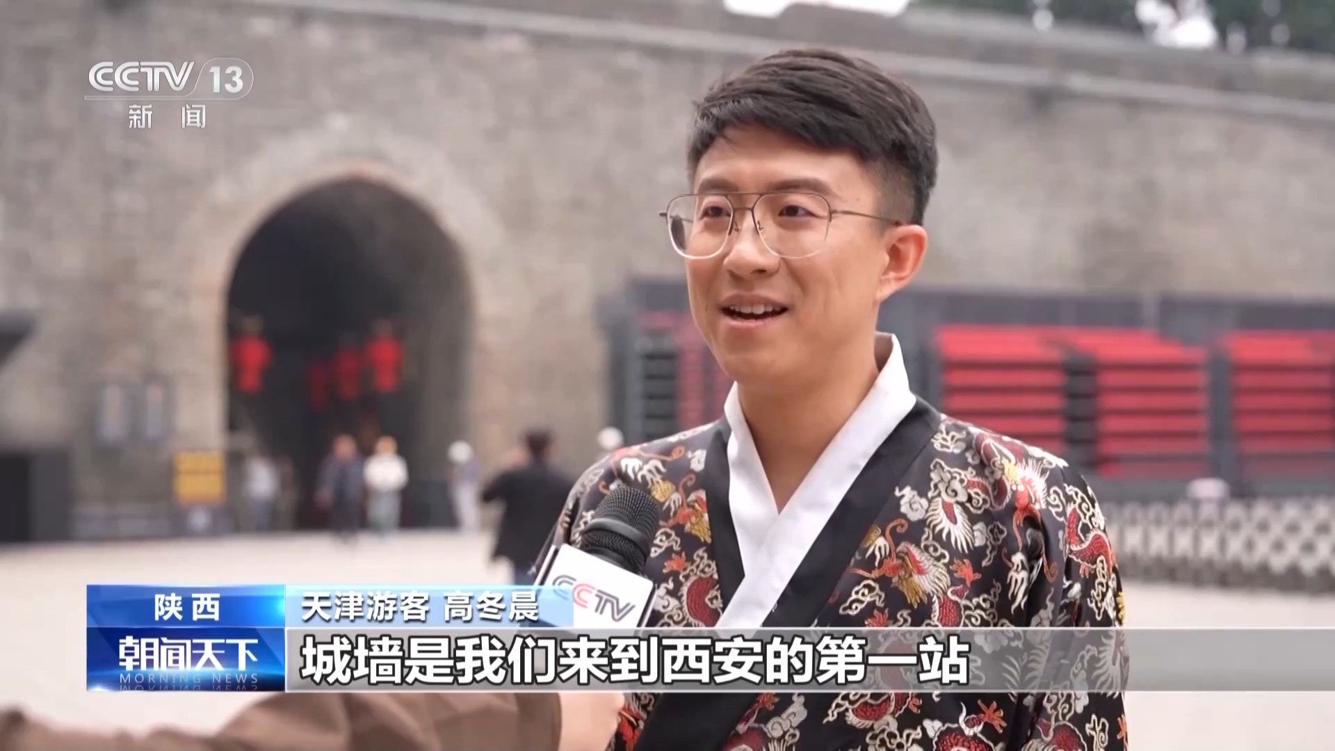 天津游客 高冬晨:城墙是我们来到西安的第一站,来了之后第一个感觉就是这里非常雄伟,非常震撼,而且非常有文化底蕴。