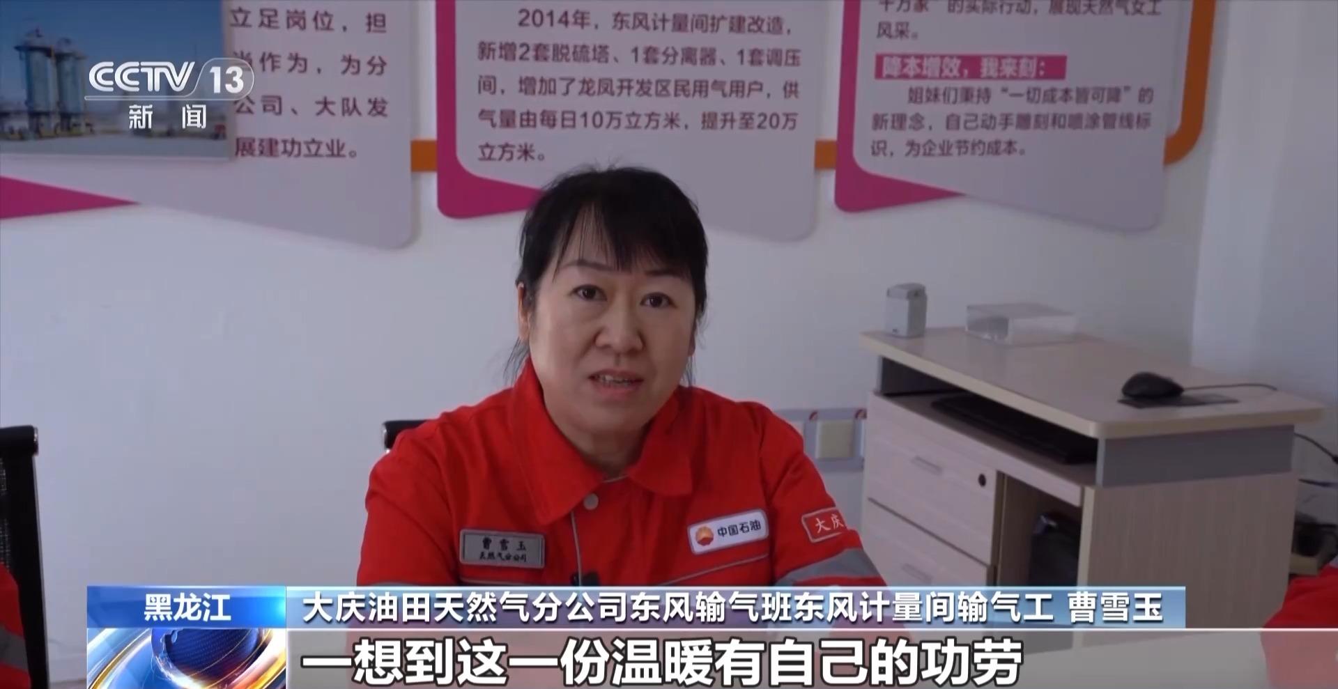 大庆油田天然气分公司东风输气班东风计量间输气工 曹雪玉:我家就在这附近,每次一回到家,家里暖暖的。一想到这一份温暖有自己的功劳,也挺有成就感的。