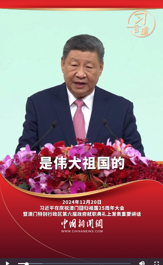 “澳门是镶嵌在南海之滨的一颗璀璨明珠,是伟大祖国的一方宝地。”2024年12月20日,习近平主席在庆祝澳门回归祖国25周年大会暨澳门特别行政区第六届政府就职典礼上发表重要讲话。
