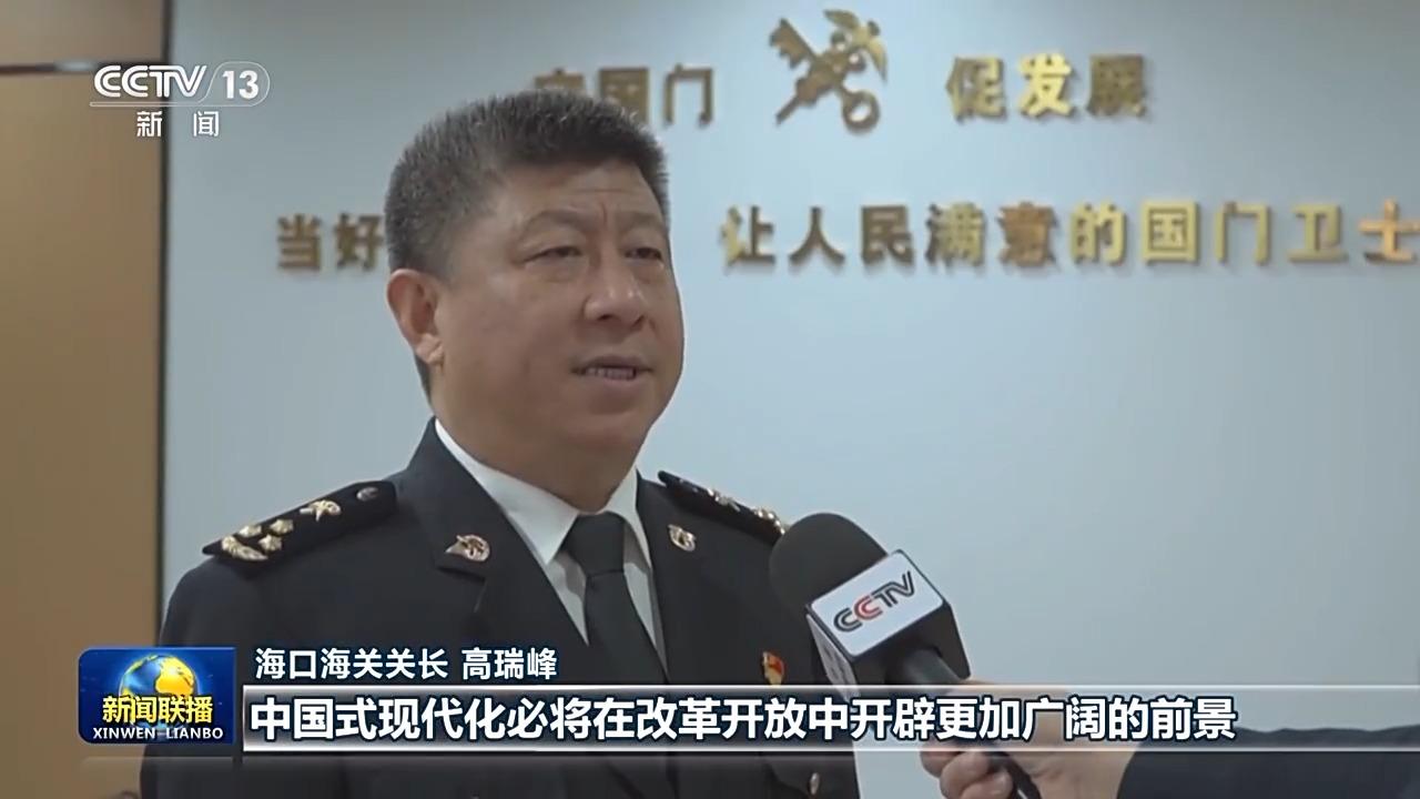 海口海关关长 高瑞峰:习近平主席在新年贺词中指出,中国式现代化必将在改革开放中开辟更加广阔的前景。今年,海南自贸港将实现封关运作。我们要始终沿着习近平总书记指引的方向前进,不断深化海关监管制度集成创新,努力把海南自由贸易港打造成为引领我国新时代对外开放的重要门户。