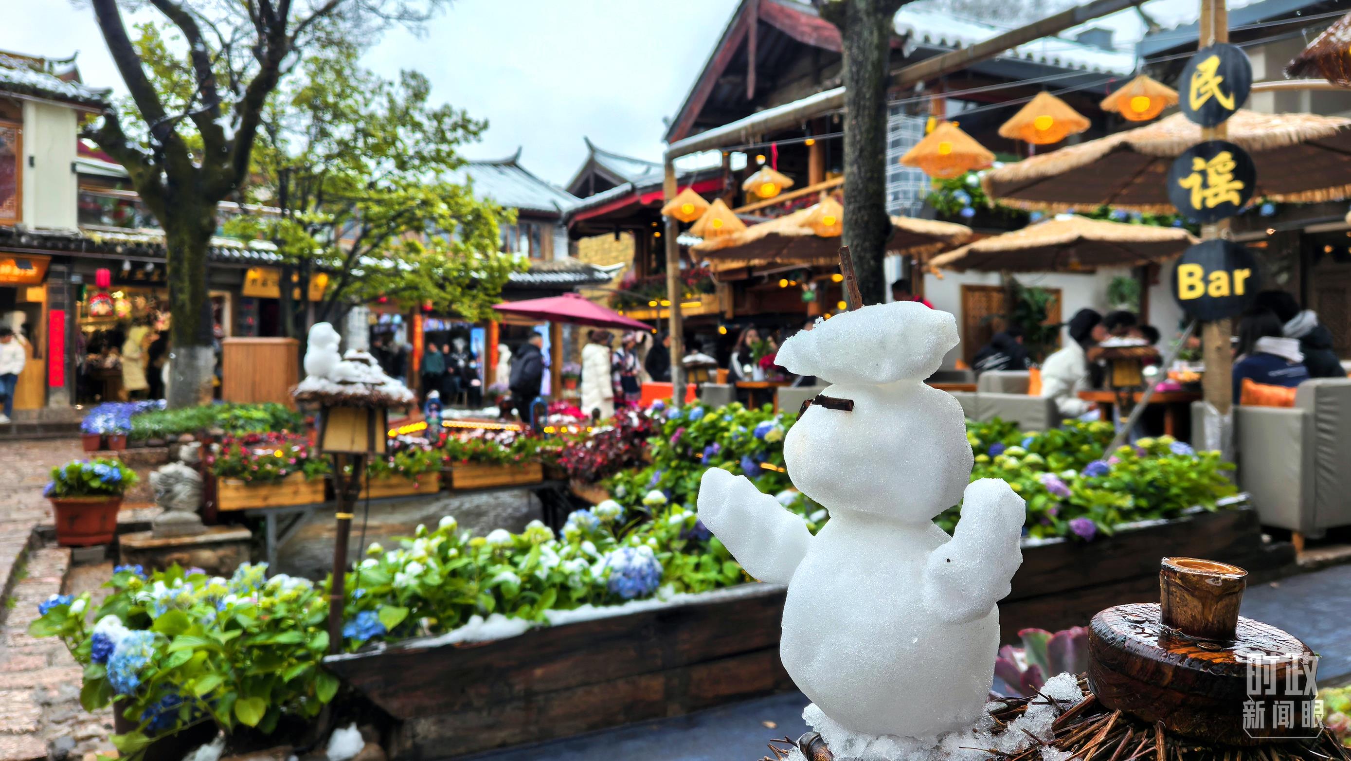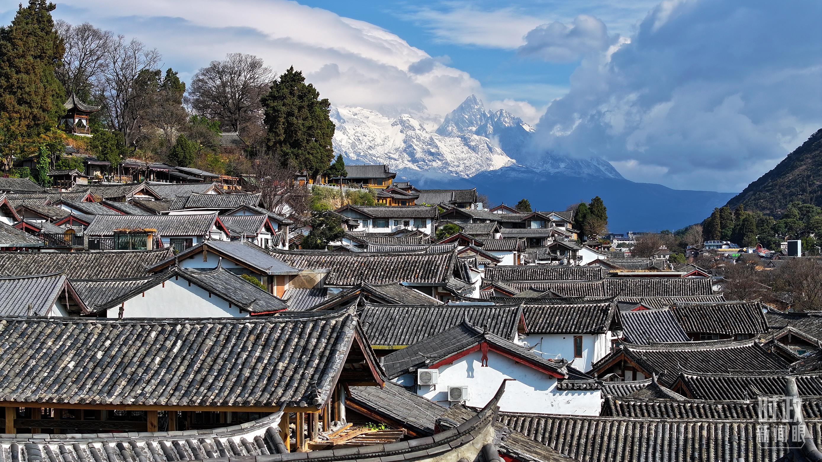 △一场瑞雪后的丽江古城。(总台央视记者程铖拍摄)