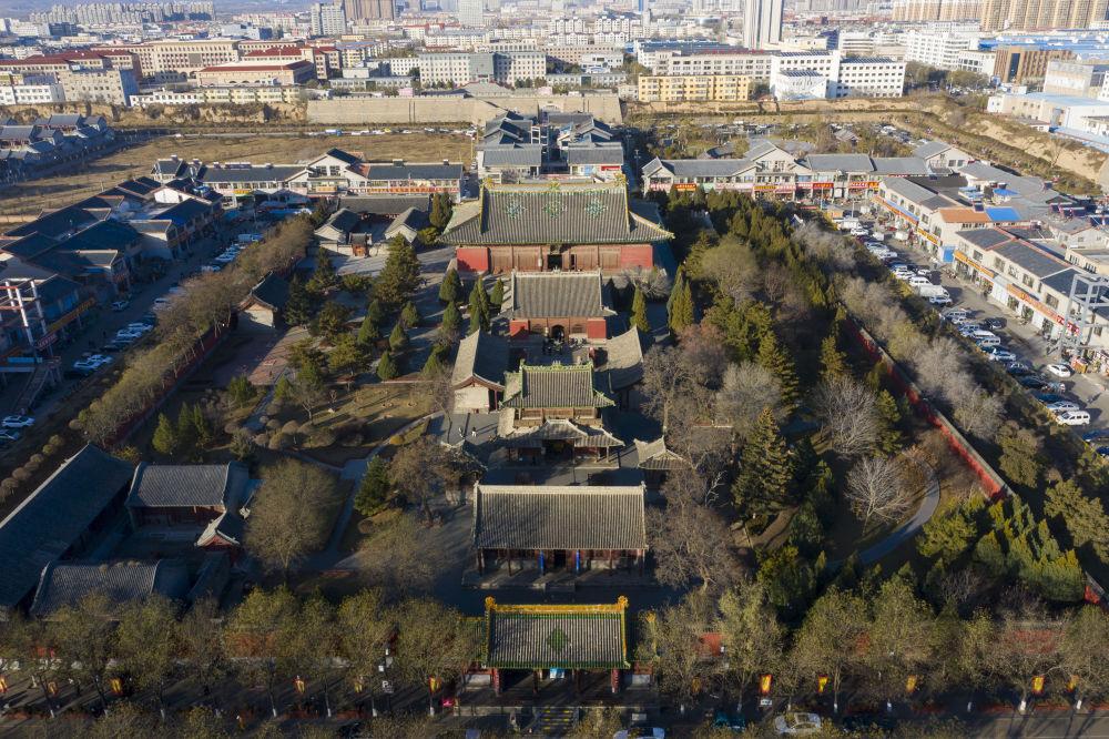 位于山西朔州的崇福寺始建于唐代,建筑奇巧壮观,气势恢宏。1988年,崇福寺被公布为第三批全国重点文物保护单位。这是2024年11月21日拍摄的崇福寺(无人机照片)。