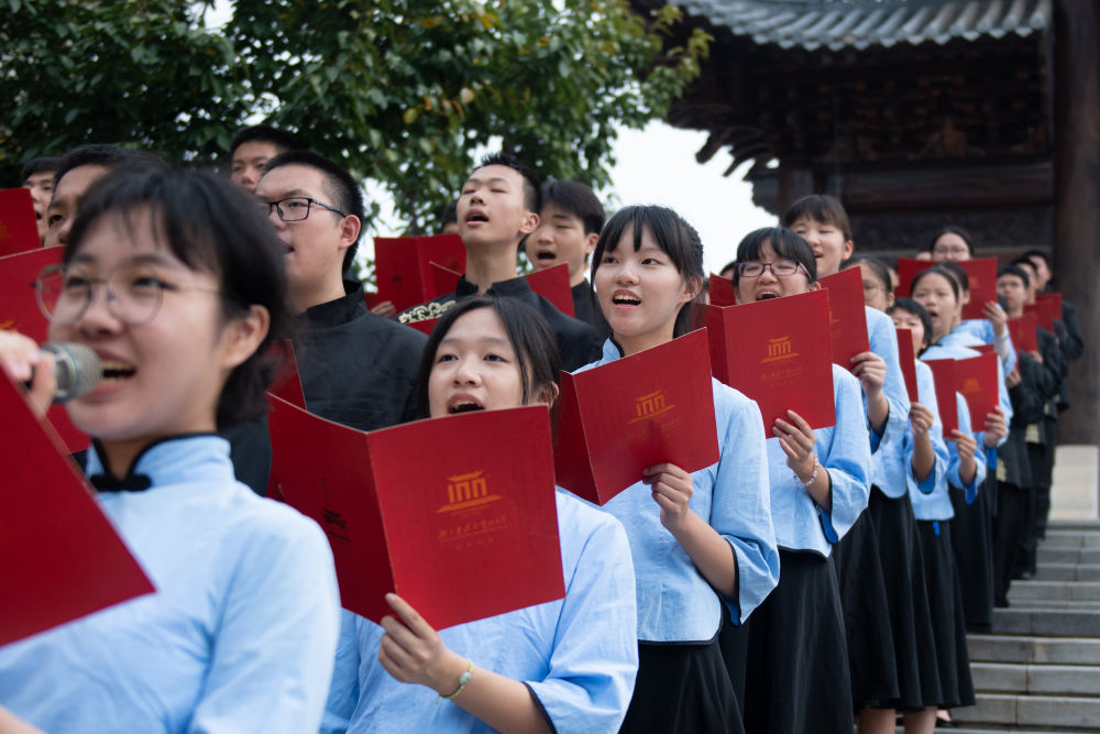 2023年9月4日,武汉市武昌区2023年秋季开学思政课在湖北省武昌实验中学开讲,这是学生在诵读《惟楚有材赋》。这堂思政课以“传承武昌古城千年文脉,争做守正创新时代新人”为主题,通过“实景体验+课堂展示”的形式,讲述武昌古城1800年文脉的历史与传承,为该校学生带来一场沉浸式课堂体验。