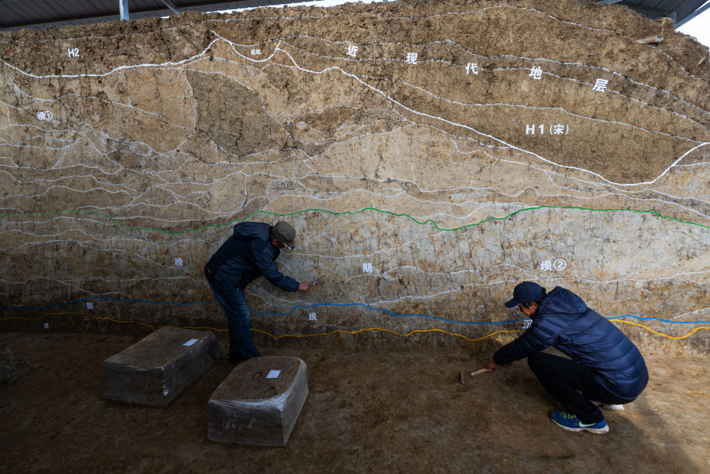 2023年12月4日,考古人员在湖北荆门屈家岭遗址熊家岭水坝现场工作。屈家岭遗址是屈家岭文化的发现地和命名地,地处大洪山南麓向江汉平原的过渡地带,是实证长江中游文明起源的重要大遗址。