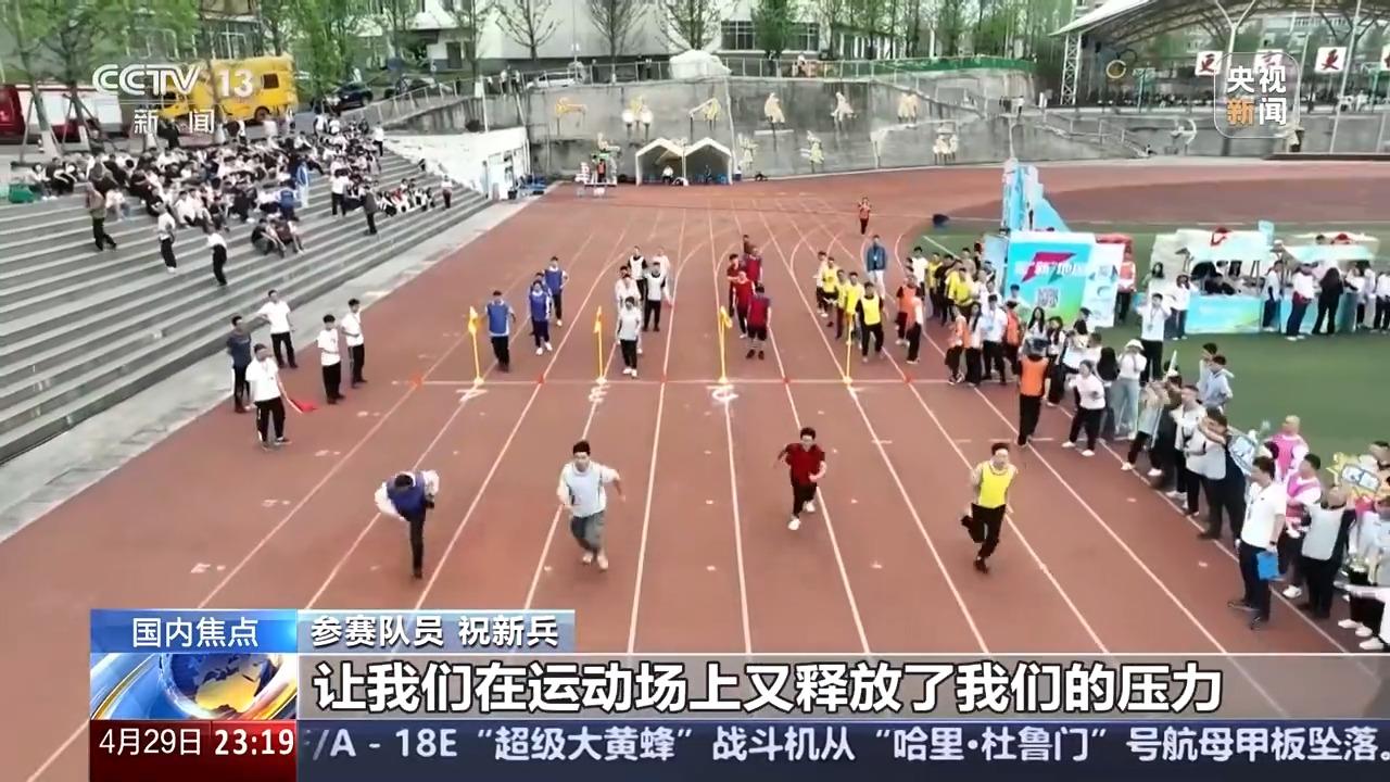参赛队员 祝新兵:我们是送外卖的,平时工作压力也比较大,在运动场上又释放了我们的压力,还是很不错的。