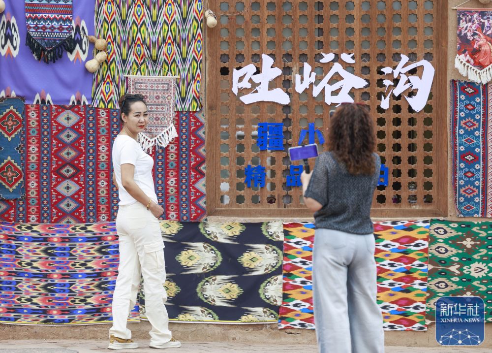 “五一”假日期间,位于新疆鄯善县的“中国历史文化名村”吐峪沟村吸引不少游人观光旅游。