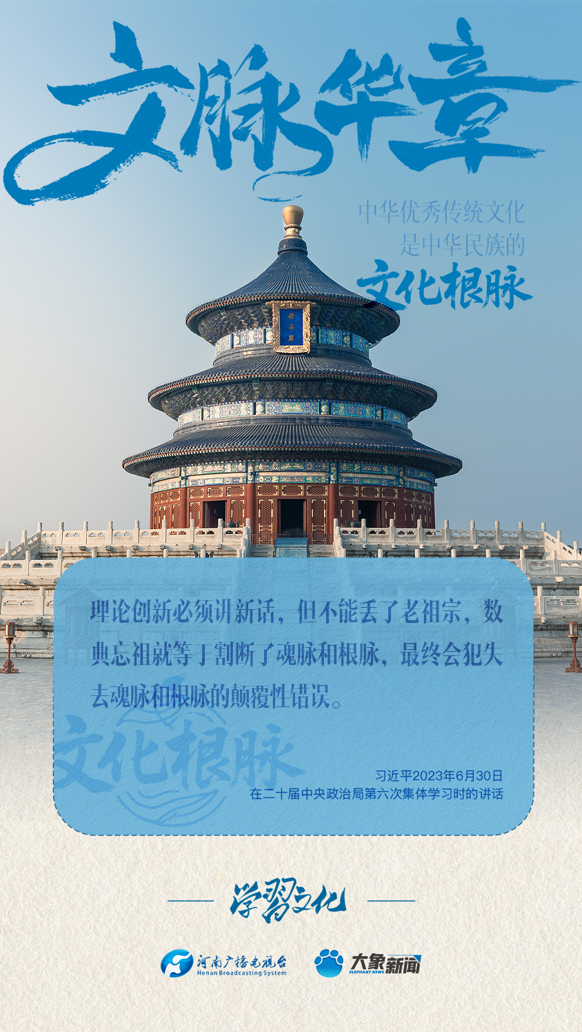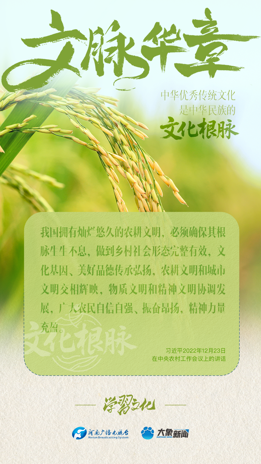 “中华优秀传统文化是中华民族的文化根脉”“决不能抛弃中华优秀传统文化这个根脉”……党的十八大以来,习近平总书记多次以“根脉”喻指中华优秀传统文化,并对为什么坚守、坚守什么、怎样坚守文化根脉作出了一系列重要论述。大象新闻为您梳理,我们一起学习。