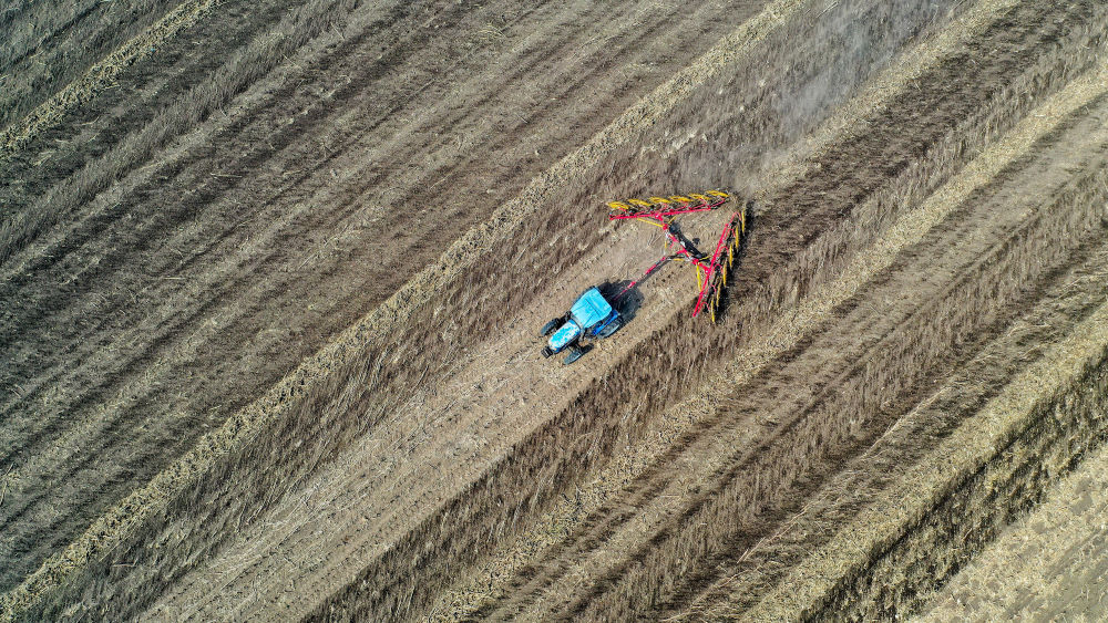 经过多年试验和推广,东北逐步形成以秸秆覆盖、少耕免耕为特点的吉林“梨树模式”等多种行之有效的保护性耕作模式。这是2020年5月7日,吉林省四平市梨树县的农民驾驶免耕播种机播种玉米。