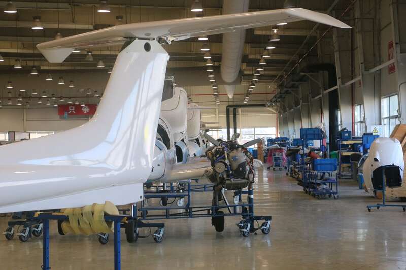 电科飞机总装车间一角。中青报·中青网记者 王海涵/摄