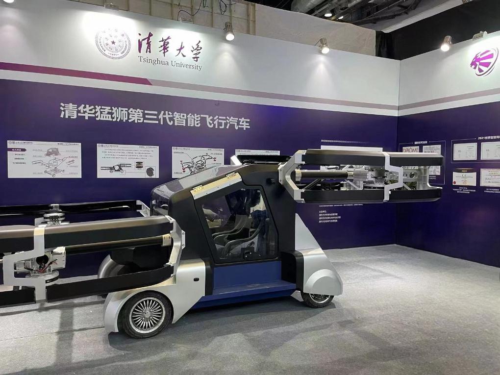 这是由清华大学猛狮团队设计研发的第三代智能飞行汽车。(受访者供图)