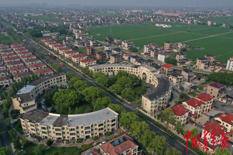 8月4日,中青报·中青网记者参加“活力中国调研行”主题采访时来到杭州萧山区瓜沥镇梅林村,连片斜顶洋房与稻田展现出新农村的图景。