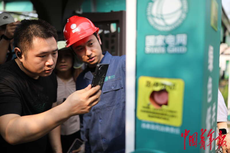 8月4日,有梅林村村民在该村光充储一体化充电站扫码充电。中青报·中青网记者 孔斯琪/摄
