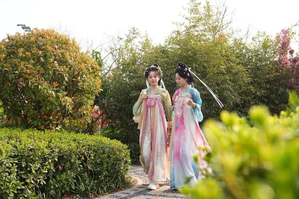 “花花草草都开了,在这边玩儿就像在古画里面玩。”游客周兮玥说。