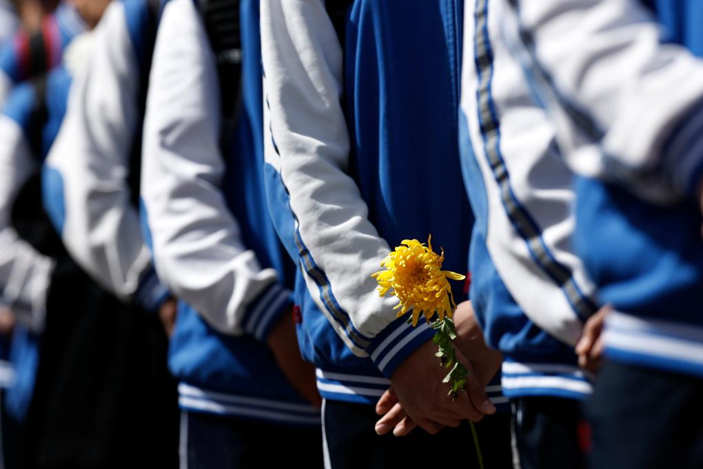 4月3日,参加活动的社会各界代表在中国人民抗日战争纪念馆向抗战英烈献花。新华社记者 张晨霖 摄