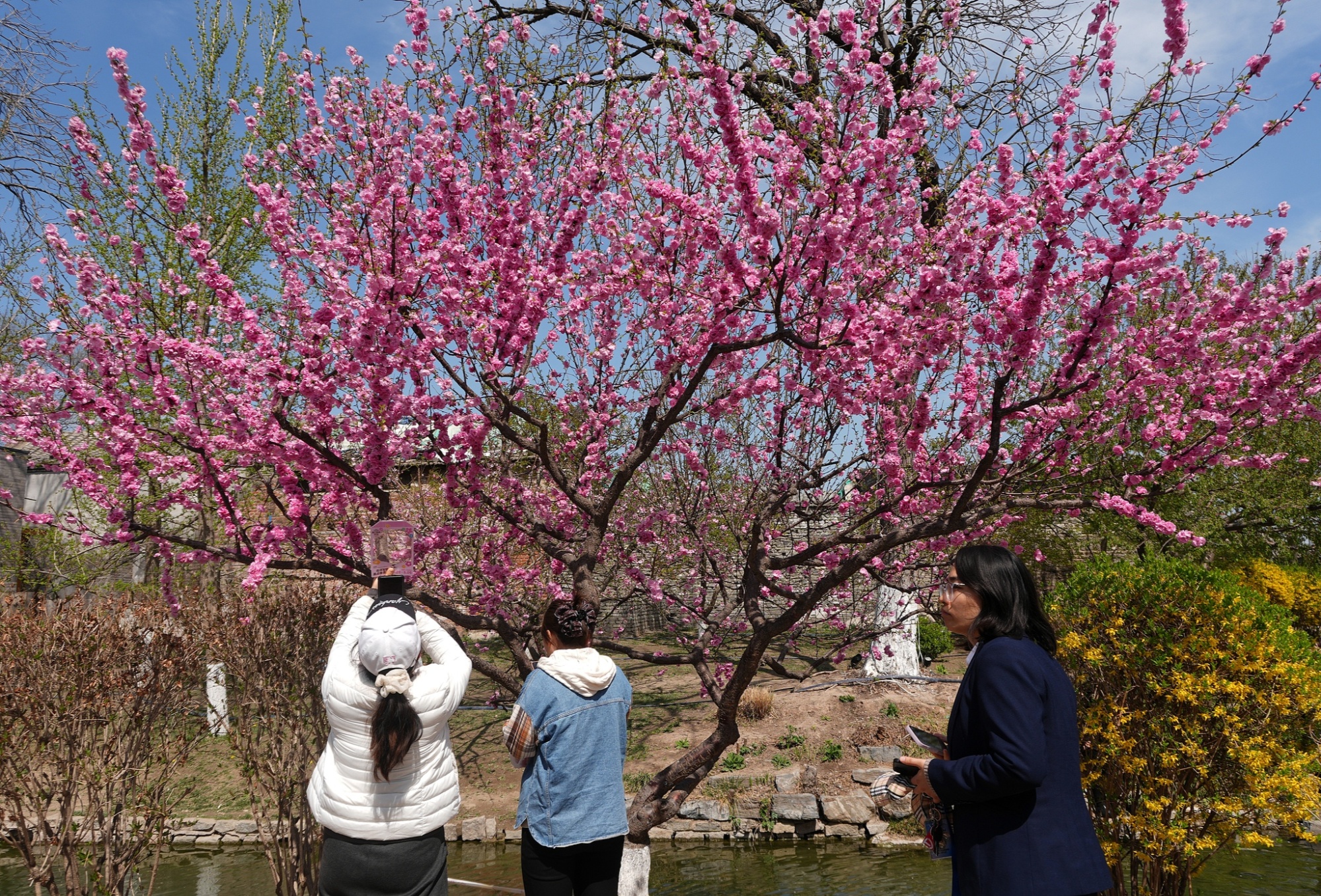 来自俄罗斯的一家三口也在北海公园流连忘返。“春天天气温暖,花开得很美,比我们预期的还要好。”他们用英文告诉记者,目前他们已经游览了长城、环球影城、天坛,还计划前往颐和园。