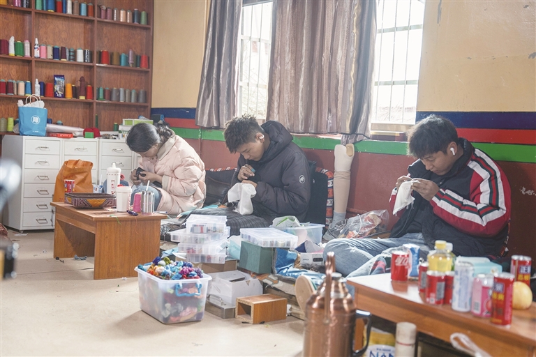 戴着耳机潜心创作的年轻小伙阿旺群培,手中那枚“礼让行人”主题香包格外引人注目。“这是我们将‘堆绣’非遗与文明宣传相结合的创新作品,用传统手艺讲述现代故事。”阿旺群培介绍道。