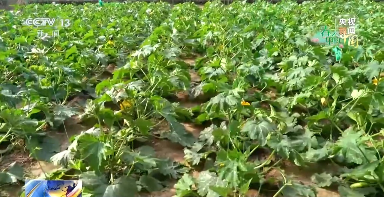 除了菠菜,在隔壁的大棚里,豆角、黄瓜、西葫芦也都已经进入采摘高峰期。种植户正忙着采摘、分拣、装箱。