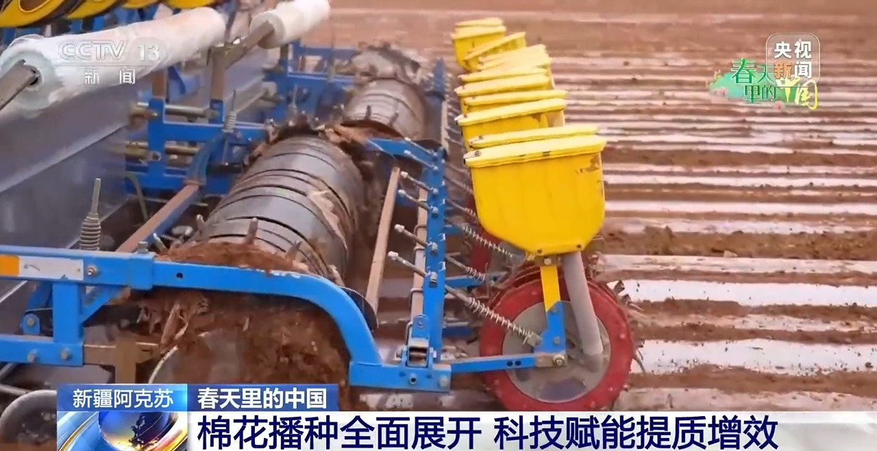 在新疆阿克苏,近期棉花播种工作已全面展开,现代化农机与节水技术同步发力,为棉花优质高产保驾护航。