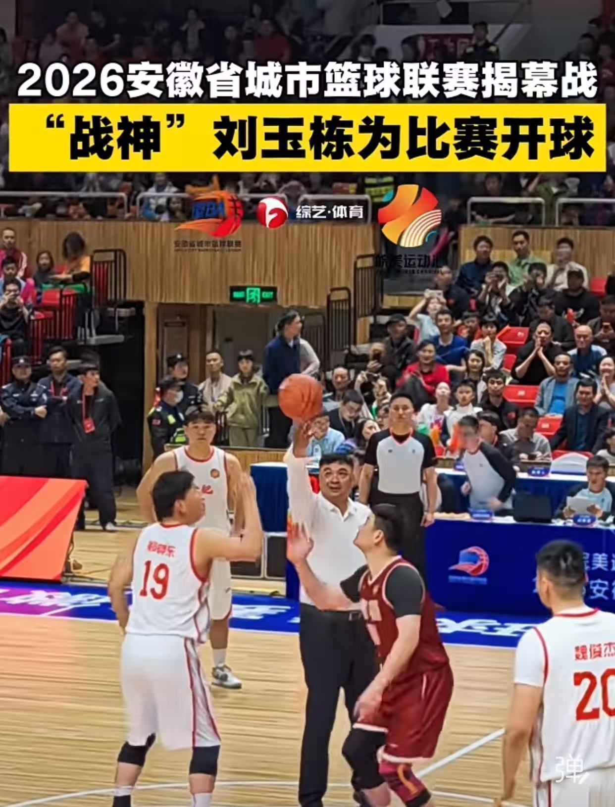 4月11日晚7:00,位于合肥市一环路的安徽省体育馆内座无虚席,人声鼎沸。在场地中央,随着CBA一代“战神”刘玉栋将篮球高高地抛向空中,备受瞩目的2026安徽省篮球联赛——徽BA揭幕战宣告打响。